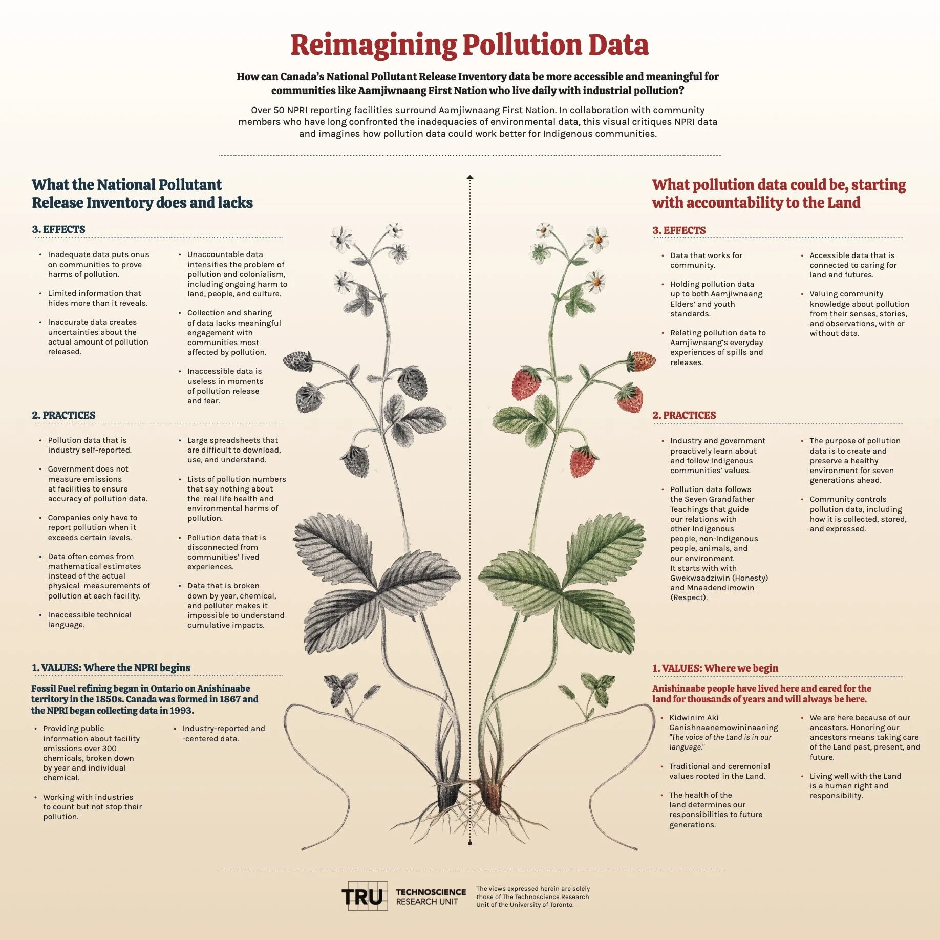 Starting with values, the project compared a reimagined Anishinaabe environmental data practice with the current federal pollution release inventory.
